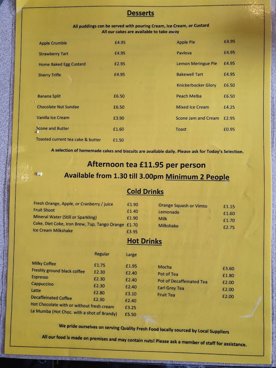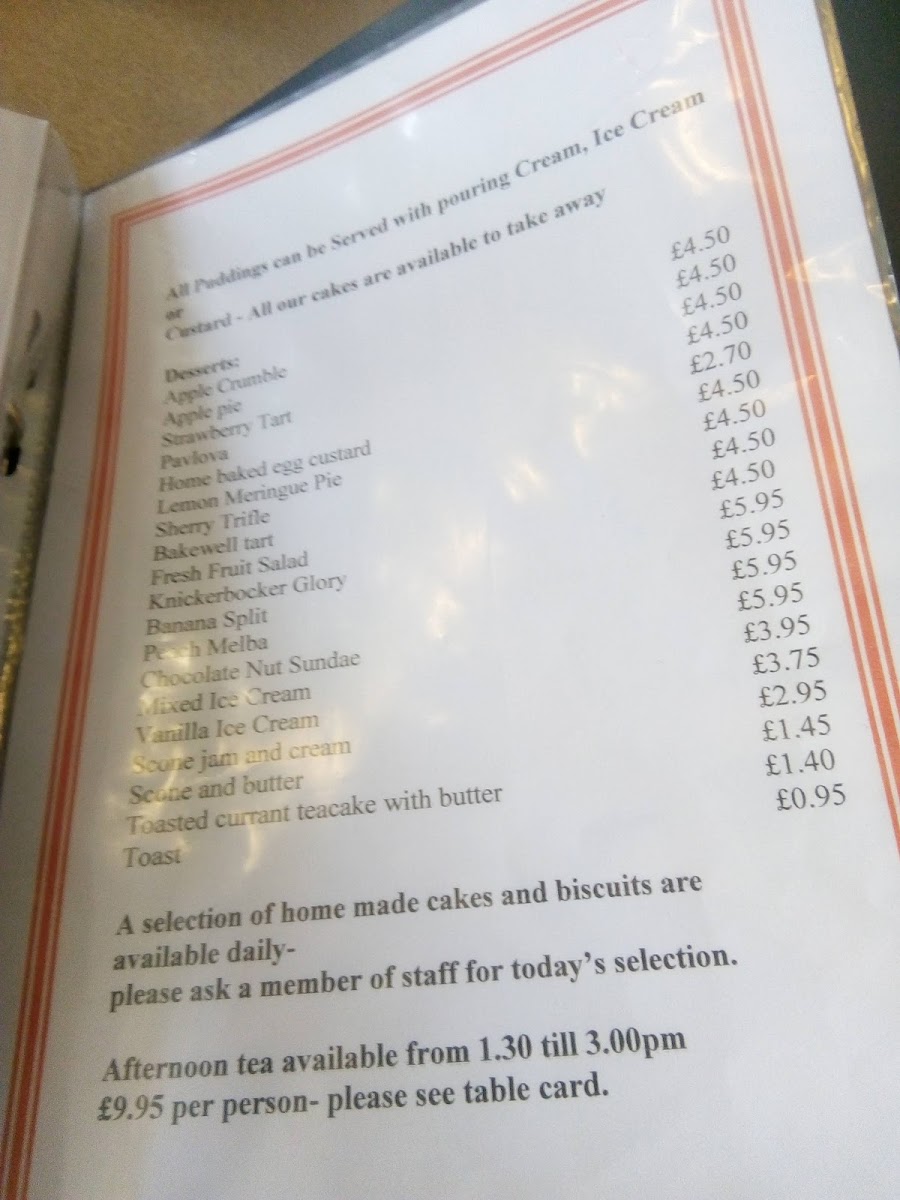 The lunch menu shines with exquisite choices such as monkfish in cream and white wine sauce and the ever-popular tuna steak. For a casual dining experience, savor a delicious cheese burger barm or the delightful crayfish tails and scallops in garlic butter for just £13.95. The desserts are generous, often homemade, and the coffee is excellent.