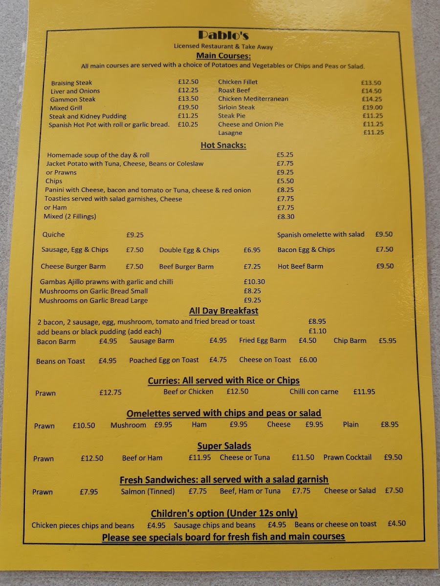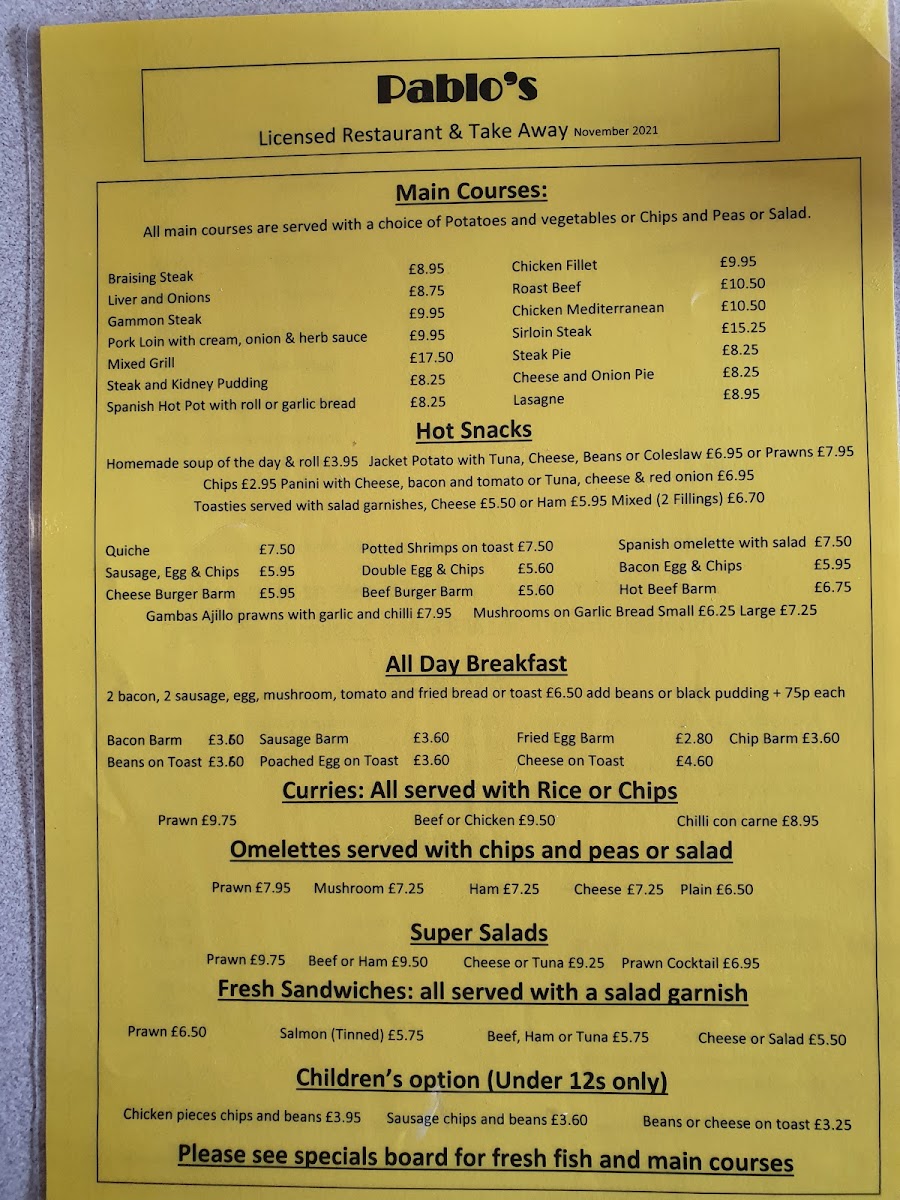 Welcome to Pablo's Restaurant, a hidden gem located at 44 Adelaide St, Fleetwood. This charming café boasts a diverse menu that caters to all tastes, making it a must-visit for anyone in the area. Start your day with their acclaimed full English breakfast, featuring perfectly cooked thin bacon and runny eggs, or indulge in an array of refreshing super salads like prawn and beef.